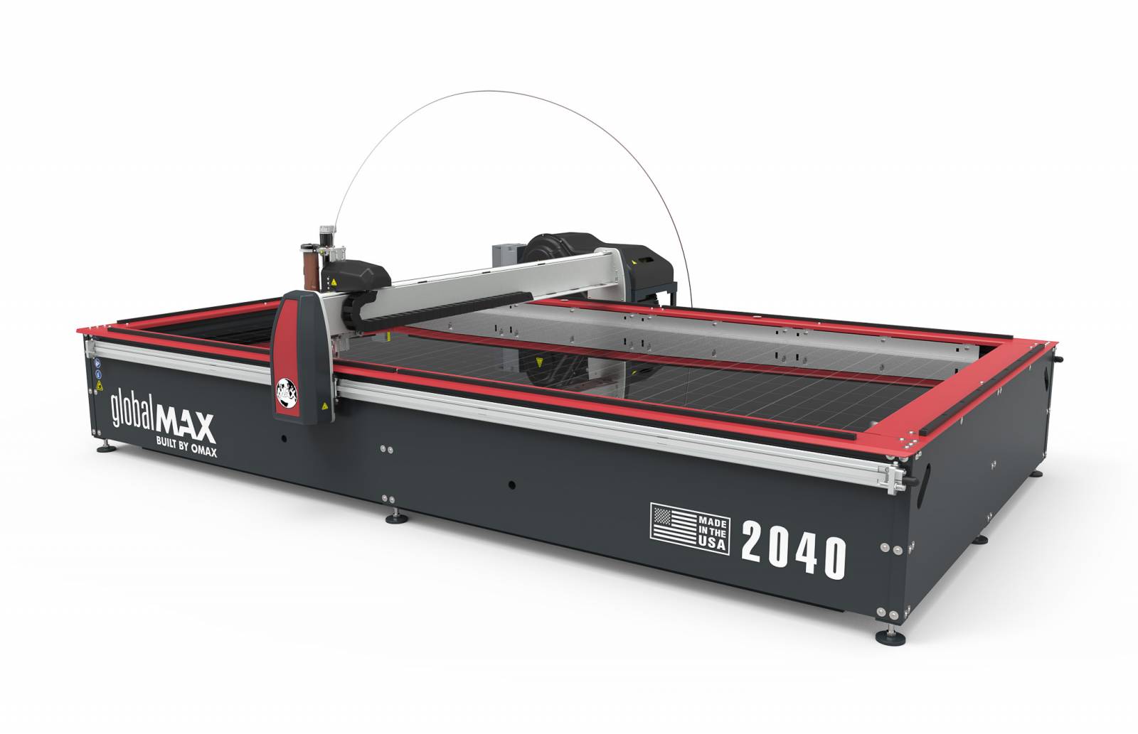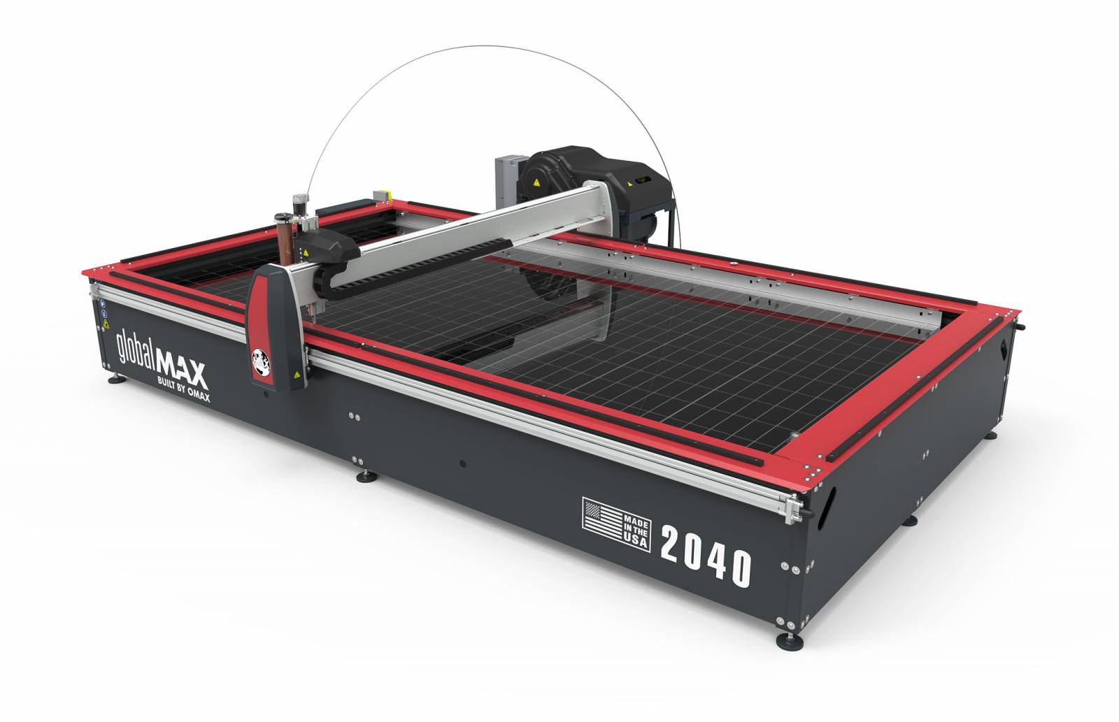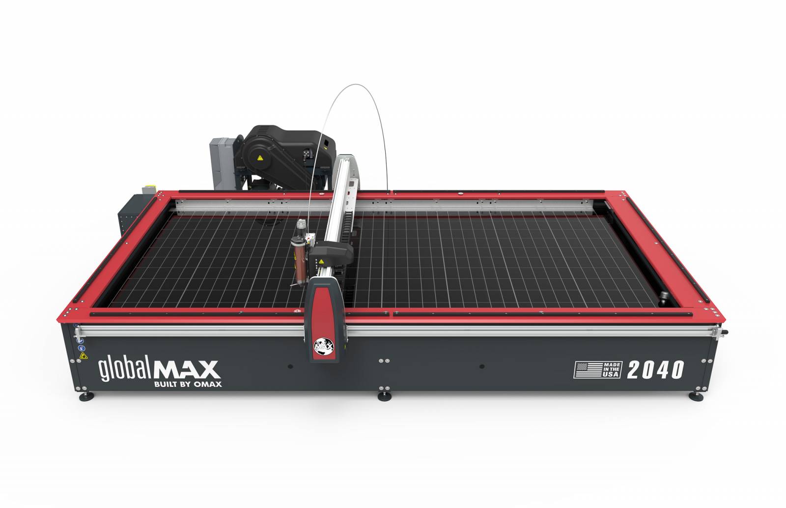 Le modèle 2040 est doté d’un plateau de coupe de 4030 mm x 2030 mm et de nombreux accessoires sont compatibles avec le Centre d’usinage jet d’eau GlobalMAX 2040.